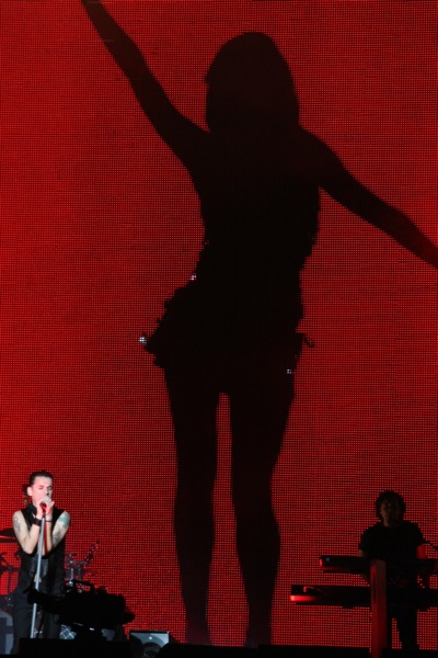 En el escenario, proyectan la sombra de una mujer perfectamente estilizada. Esa es la religión personal, la mujer es un templo y al igual que Joaquín Sabina, los de Depeche no tienen más religión que un cuerpo de mujer.