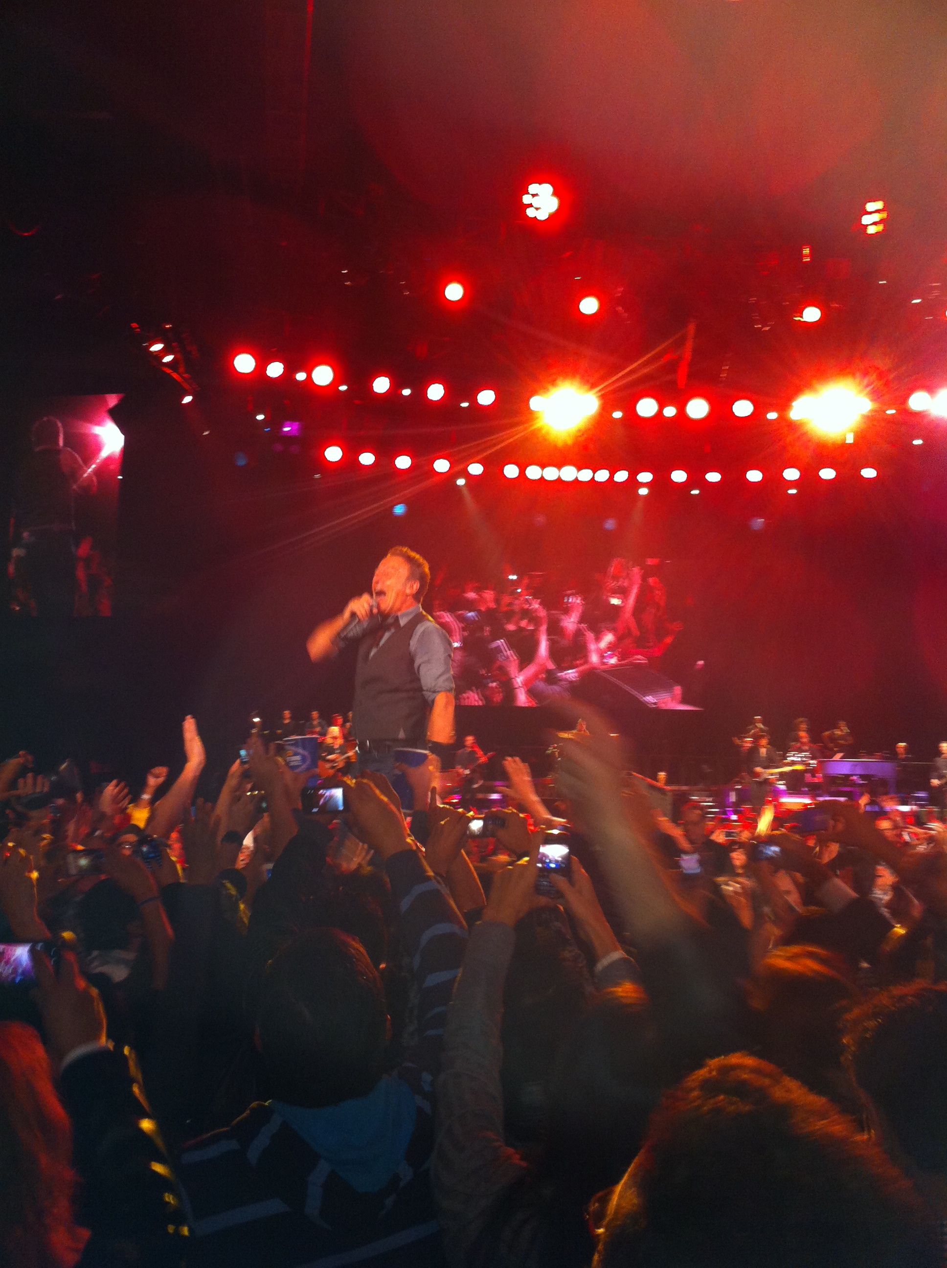 Tras su emblemática canción, sigue otro himno: Born to run. Por si fuera poco, luego Glory days. Y por si alguien no se ha quedado afónico de tanto cantar y gritar, saca su último as: Dancing in the dark, en la cual, al igual que en el video, sube a una chavita del público a bailar con él.