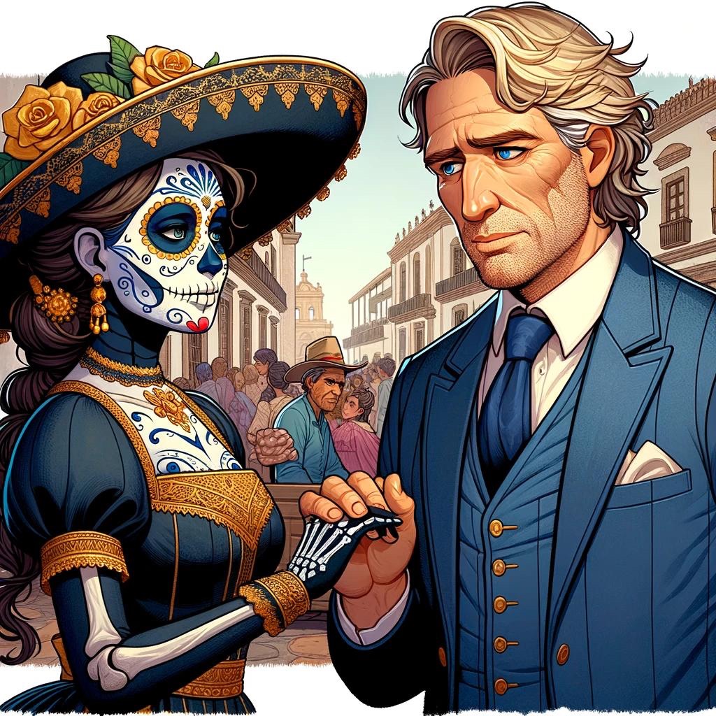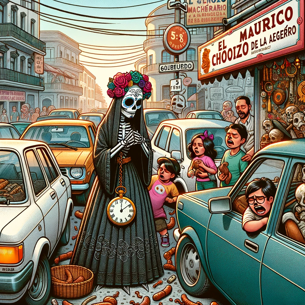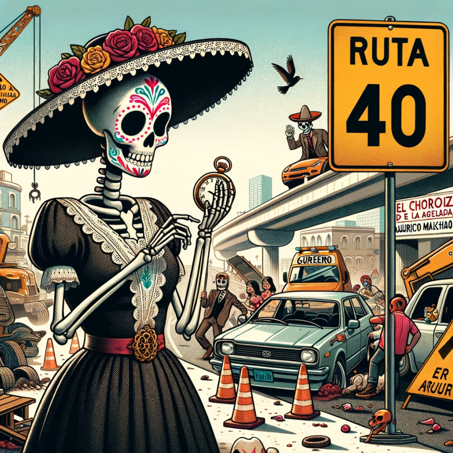 IV El susurro de la muerte enamorada Mau, en silencio, tenía un amor guardado: Una Parca, que años lo había ocultado. Al verlo tan abatido, ella le implora: “Amor, te ofrezco eternas flores ahora.” Él no sabía si era amor o infarto Pálido, sólo balbuceaba harto. Ella lucía un vestido de largos vuelos, Su presencia, esbelta y en huesos, causaba largos y espantosos ruegos. Pero la huesuda le habló con decoro: “En este mundo y el otro, yo te adoro”. El gobernador exclamó con voz crítica: “¡Eres la Muerte, flaca y raquítica! ¡Defiéndanme como en Escolástica!”, “¡Apresúrense, Chepe y Lupita!”, Pero nadie lo escuchó en su garita. La Muerte enamorada lo miraba “Mau: soy tu verdadera amada Los queretanos no te quieren nada; Pues ya los cansaste por tanta faena Y algunos quieren votar por Morena. Vente conmigo para siempre, güero Yo te libraré de tanto mal agüero, Conmigo ya no sufrirás y las obras terminarás” Un gran beso selló el pacto Y la avenida se terminó en el acto Y para siempre el agua abundó Y la paz en el estado reinó Mano con hueso, juntos escaparon, Hacia un amor eterno tornaron.